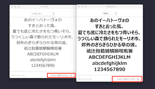 インストールするフォントのウィンドウが表示されますので「フォントをインストール」のボタンをクリックします。