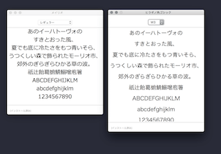 游ゴシックとヒラギノ角ゴシックとの比較です。
