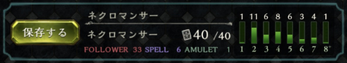 デッキを作成するとこのように コストグラフというものも出てくるので、 作成したデッキのコストバランスは これを見て調整すると一目でわかります。