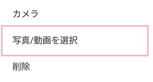 メニューウィンドウが表示されるので「写真/動画を選択」をタップしましょう。