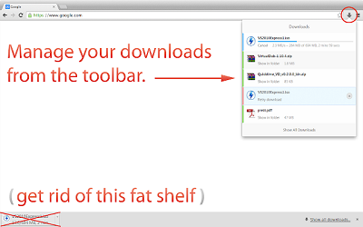 GoogleChromeのダウンロードバーはダウンロードしたファイルが一目で分かりすぐにアクセスできる便利な機能ですが、ファイルをダウンロードするたびに表示される・消すのは手動と人によっては鬱陶しいと思う機能でもあります。