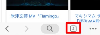 すると下のウインドウの数の表示が2になるので2をタップしYouTubeの画面に切り替えてください。