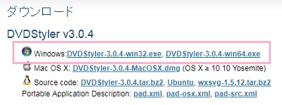 それでは、まずオーサリングソフトを用意しましょう。今回はフリーソフト「DVDStyler」を使ってDVDを作成します。下記リンク先のダウンロードページに移動しましょう。