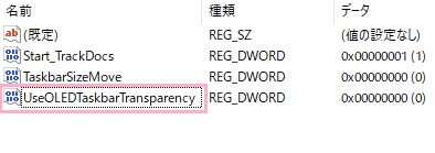 作成した「UseOLEDTaskbarTransparency」をダブルクリックします。