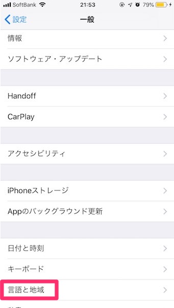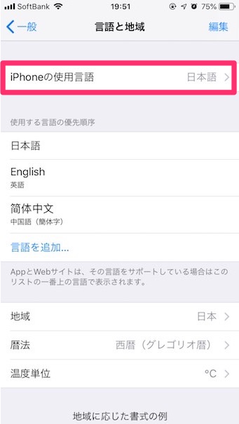 そして「iPhoneの使用言語」をタップ、ここまでが言語設定を行う基本的な操作方法です。