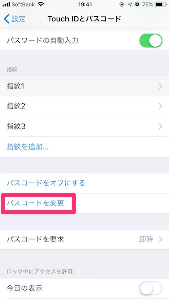 「Touch IDとパスワード」内に「パスコードを変更」という欄があるのでもう一度タップします。
