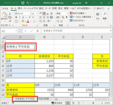 幾つかのシートだけという場合には、コピー&ペーストだけでも簡単に表示させることができます。
