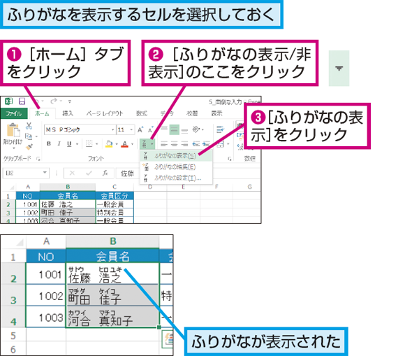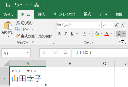 Excelでふりがなを表示
