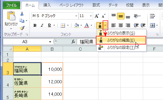 Excelでふりがなを表示する方法