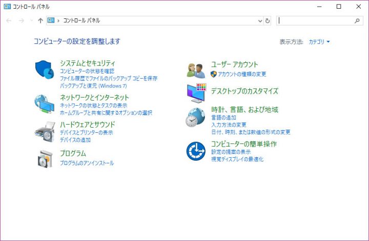スタートメニューをクリックし、コントロールパネルを表示させます。