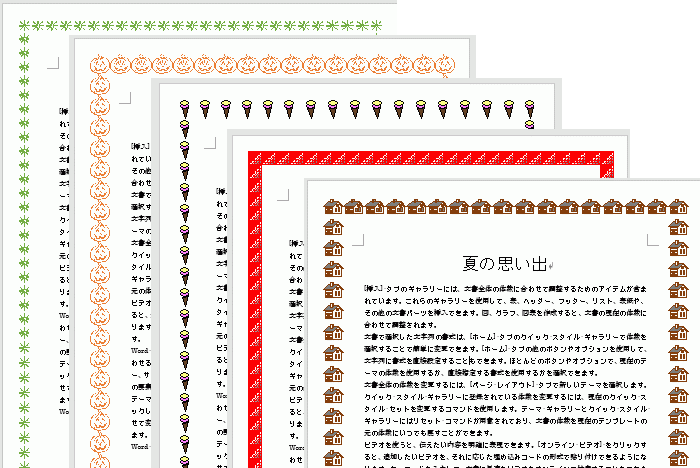 この図にあるように、ページを罫線で囲むこともでき、罫線で見栄えの良い文書作りが可能です。