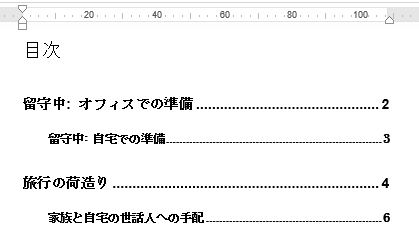 文書の編集中に目次の名前やページが変わることがあります。