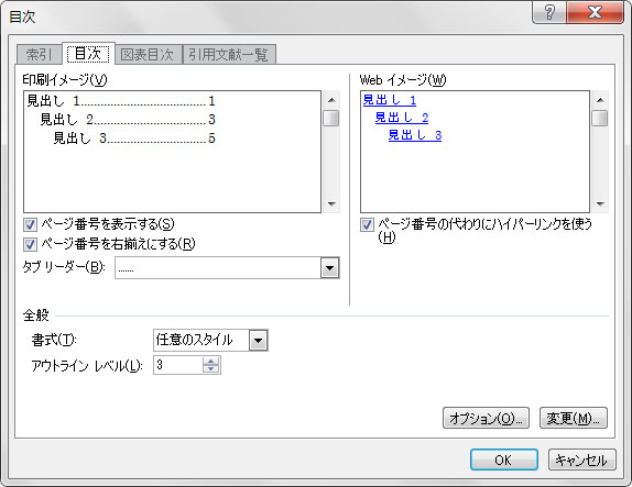 目次の体裁を変更する