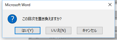 この目次を置き換えますか?と表示されたら、「はい」を押します。