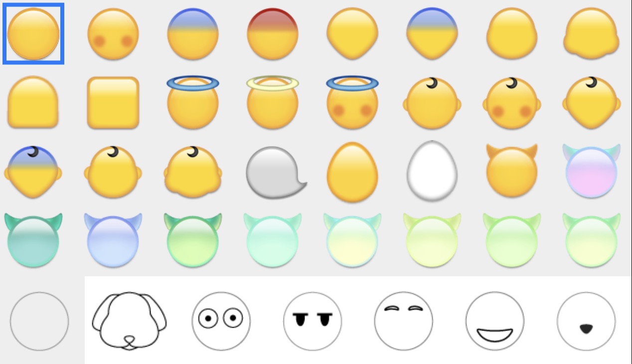 顔、目、眉、口、鼻、頬、アクセサリなど 細かい素材も用意されているので、 自由な組合せでオリジナルの絵文字が作成できます。