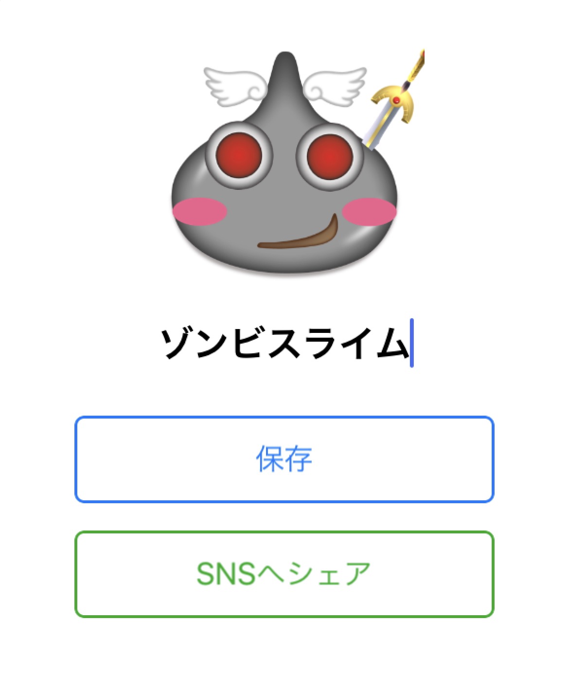 作成した絵文字は名前を付けて保存ができます。 もちろん、良いものができたら SNSなどに投稿したりもできます。