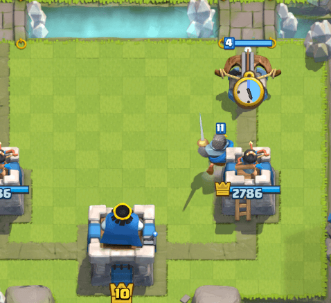 ・様子見パターン 手元にクロスボウがないときは「ナイト」や「メガガーゴイル」などスピードが遅いユニットをキングタワー周辺に配置し様子をみましょう。