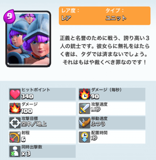 | メガガーゴイル | クロスボウの防衛用。攻撃力が高く、空ユニットの特徴を活かし敵の妨害カードを攻撃する役割。 |