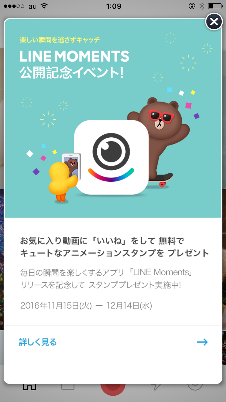 11月15日(火)〜12月14日(水)までLINE Momentsの公開記念イベントを開催しているようです。 これはお気に入り動画に「いいね」をすることで無料でアニメーションスタンプをゲットできる内容となっています。