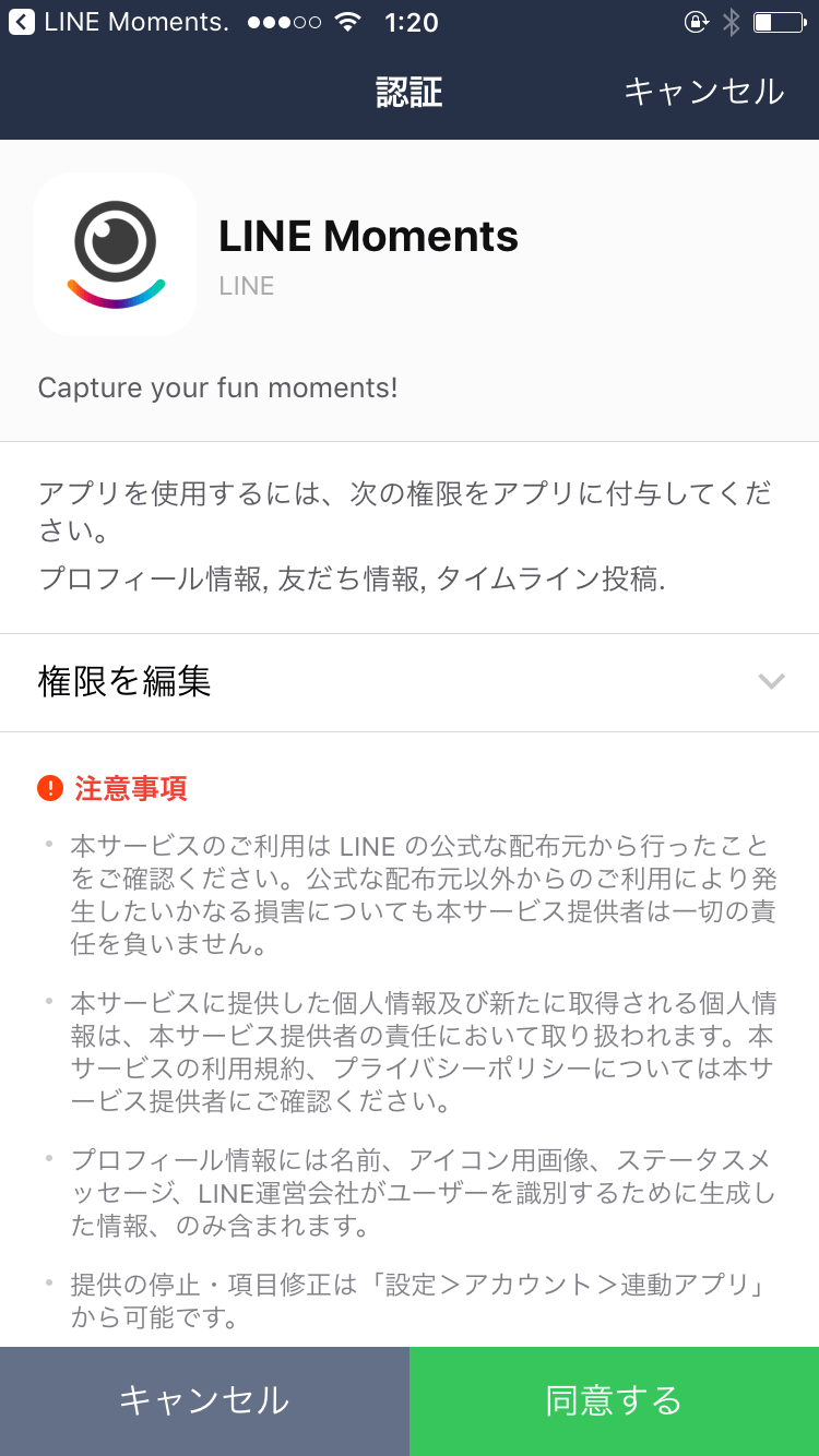 LINE Momentsから通知を行うか確認がきますので、問題なければ「許可」をタップしましょう。