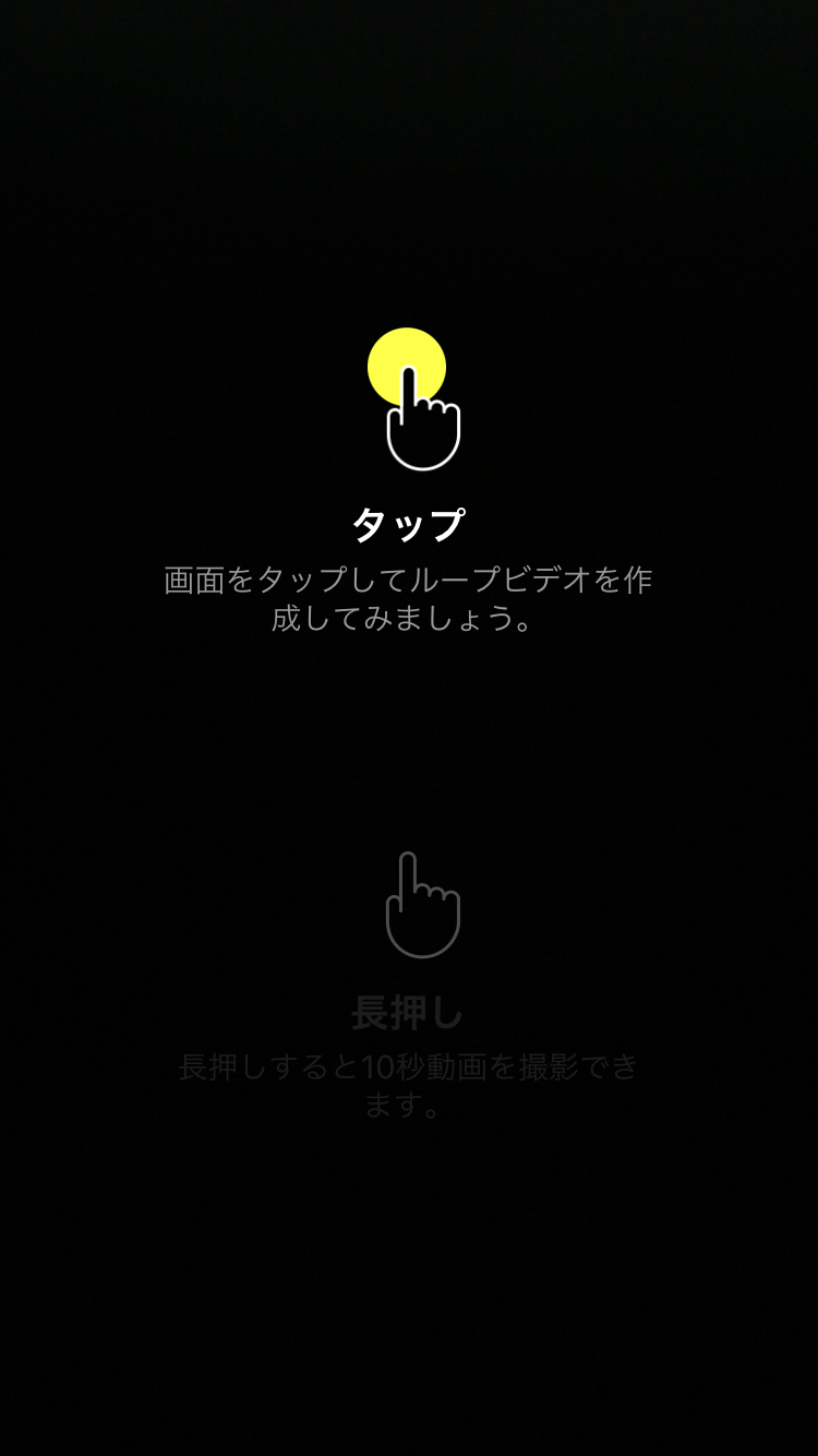 下部中央の赤いアイコンをクリックすることで動画の撮影ができます。 (カメラへのアクセスを許可する必要があるので、許可していない人は「設定」から許可するようにしましょう) タップをすることでループビデオを作成できます。 長押しすることで10秒動画を撮影することができます。 撮影が終わると動画に対して、ハッシュタグなどのコメントを付けることができます。