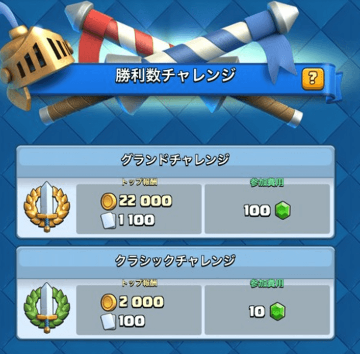 クラシックチャレンジ・グランドチャレンジに調整し、勝利数に応じてゴールドをゲットすることができます。 もちろん参加費用がかかりますので、腕次第でゴールドをゲットできる方法になります。 ちなみに ・グランドチャレンジではMAX22,000ゴールド ・クラシックチャレンジではMAX2,000ゴールド をゲットすることができます。