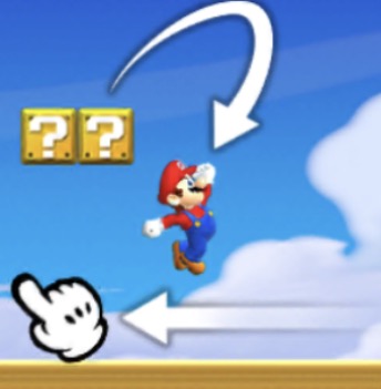 タッチしたまま指を左にスライドすると ジャンプのきどうを少しかえられます。
