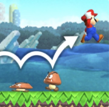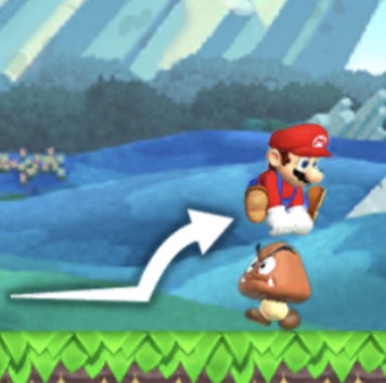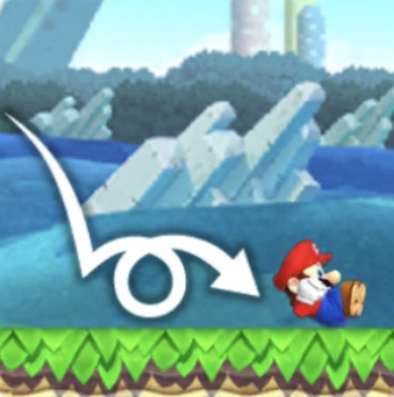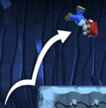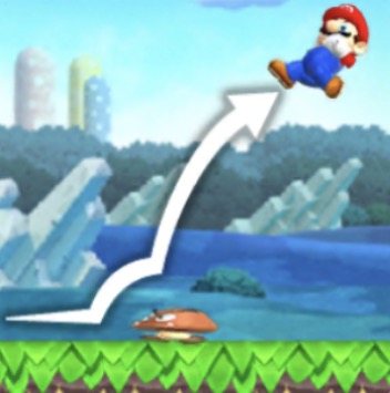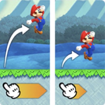画面を長くタッチするとより高くジャンプします。 ※ルイージの場合、さらに高くなる。