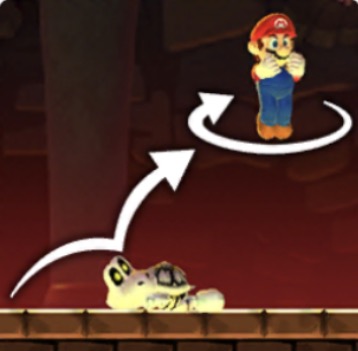 受け身中に画面をタッチすると 受け身ジャンプをして キノピオたちから声援をもらえます。