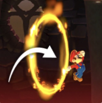 城にある火の輪をくぐると キノピオたちから声援をもらえます。