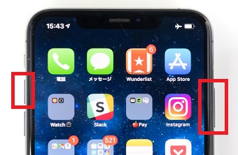 右側面にあるサイドボタンと、左側面にある音量を上げるまたは下げるボタンを同時に押してください。