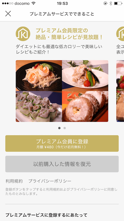 通常は無料でアプリを使うことができますが、一方でプレミアムサービスに登録することで ・プレミアムサービス会員向けのレシピ ・ランキング機能 などKURASHIRU(クラシル)アプリ内で特別な機能を利用することができます。