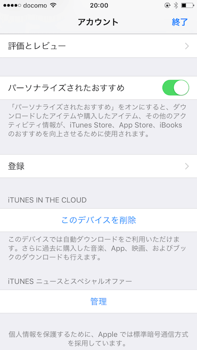 するとアカウントページが表示されます。このページの下部にある「登録」をタップしましょう。 (解約しようとしているのに、登録をタップするとかちょっと不思議ですね。。)
