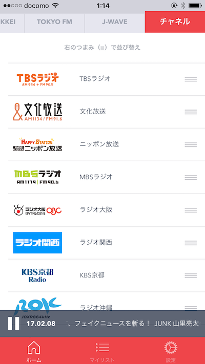チュートリアルどおり横にスワイプしてみましょう。多くの放送局を選択することができます。