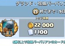 お決まりの新カード登場の際のセールです。今回は攻城バーバリアンx100が150エメで購入できます。他の方法としては通常の宝箱などから入手する方法もありますが、レアカードのため入手はさほど難しくなさそうですね。 とはいえ一気にカードを集めて、攻城バーバリアンをデッキに使い方はセールで購入するのもありかと思います。