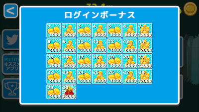 ソーシャルゲームのようにログインボーナスがあります。毎日遊んで段々豪華になるボーナスをゲットしましょう!