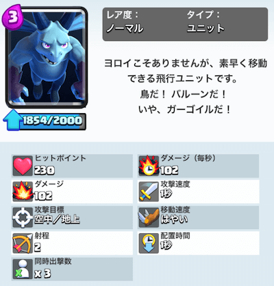 スケルトンラッシュをユニットで迎撃する場合は複数ユニットからなるカードが有効です。例えばガーゴイルは複数ユニットで3体出撃すすので、一度に3体のスケルトンを仕留められますし、攻撃速度も早くスケルトンラッシュの対策には有効なカードです。 ただし相手がガーゴイルを見切って矢の雨を打ってくる場合もありますので、注意が必要です。