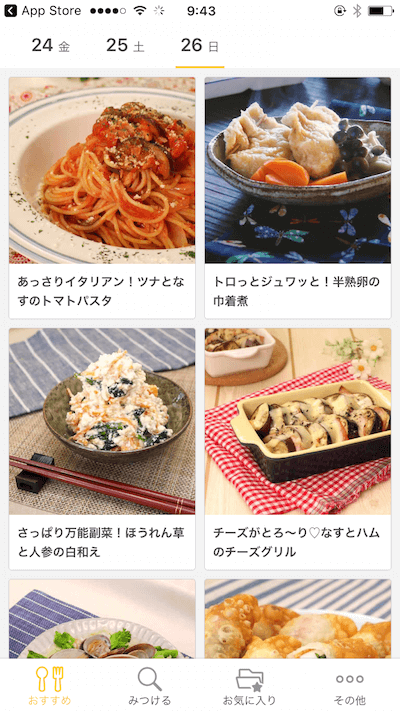 アプリでは毎日おすすめのレシピがレコメンドされてきます。