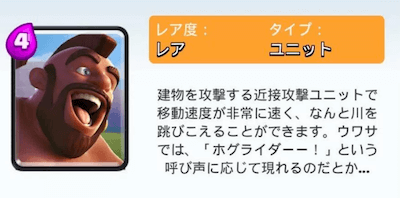 ホグライダーは移動速度がはやいユニットです。レイジで加速することで、更にタワーまでの速度があがりより大きいダメージを与えます。