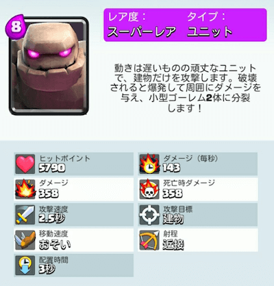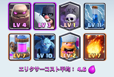 ランバージャックが先にやられるとゴーレムにレイジがかかりタワーに対して大ダメージを与えます。 またランバージャックとゴーレムの組み合わせが作れない場合はゴーレム+スケルトンラッシュの組み合わせにも切り替えができます。