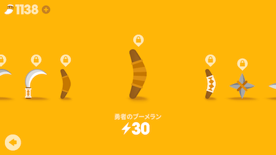 やり以外の武器もポイントをためることで購入することができます。ブーメランや手裏剣など原始的ながら飛び道具として使える武器がショップに取り揃えられています。