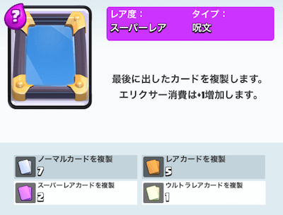 鏡はユニットを複製できるカードです。同じようなカードにクローンがありますが、クローンは今場に出ているユニットをそのまま複製しますが、鏡の場合は直前に出したカードと同じカードを更に場に出すことができます。鏡の場合は建物も複製できますので、エリクサーポンプを連続で出す!という事も可能になります。 鏡を使ったおすすめデッキ