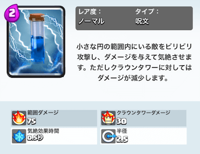 ザップは上位アリーナでもめちゃめちゃ使われている呪文カードです!ダメージと半径は小さいながらその気絶効果もあり使い勝手のいい低コストの呪文カードです。攻撃時のちょっとしたアクセントにもなりますし、防御時では例えばスパーキーを無力にできる力を持っています。 いずれにしろザップはノーマルカードながら、大人気のカードです。ぜひ試してみましょう。 更に詳しいザップの使い方やおすすめデッキをご紹介!