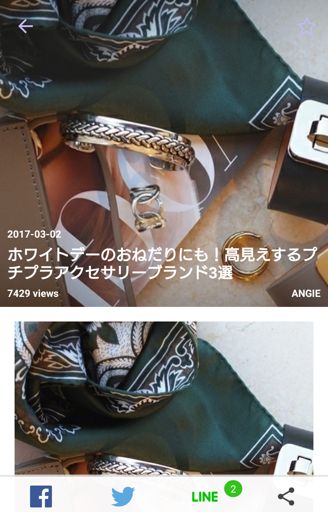 記事を「お気に入り」するにはまず、「お気に入り」したい記事を表示します。 記事を表示したら、右上あたりにある「☆」をタップします。