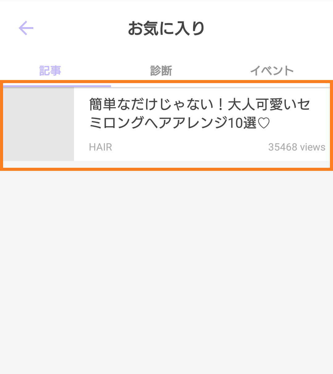 すると「お気に入り」メニューが表示され、先ほど「お気に入り」した記事が表示されています。 「お気に入り」は『記事』だけではなく、『診断』や『イベント』も「お気に入り」することができます。 気になった記事は「お気に入り」するだけでまとめて見ることができ、情報を忘れないでいれますね。 とても便利な「お気に入り」機能、ぜひ使ってみてください!