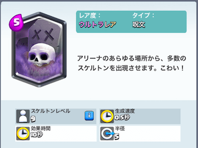 スケルトンラッシュのカードもディガー(穴掘り師)と相性のいいカードになります。使い方はゴブリンバレルと一緒でディガー(穴掘り師)でクランタワーのターゲットをとりその隙きにスケルトンラッシュで生成したスケルトンが相手のタワーを襲います。