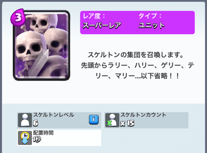 ウルトラレア同士でかなり豪華なコンボですが、スケルトンラッシュの火力はゴブリンバレルより高く、一発でタワーを落とせるポテンシャルを持っている凶悪なコンボです!