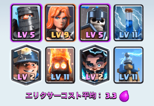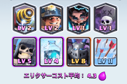 ただし防御が若干不安なデッキでもあるので(ホグライダーとかには弱いです)、フリーズをうまく使って切り抜ける必要があります。