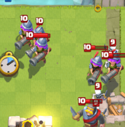 ゴブリンバレルは防御する際にザップなど呪文で止めたり、ユニットを出して止めますが、2発目のゴブリンバレルには不意打ちで対応できないプレイヤーも割といます。