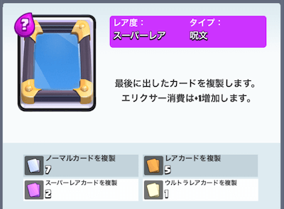 クラロワの「鏡」のカードは最後に出したカードを複製をする呪文のカードです。